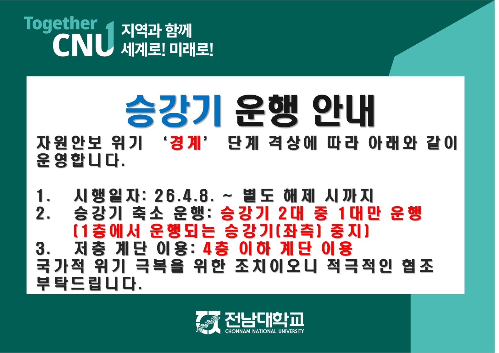 인사관 본관(8층건물) 승강기 운행 중지 안내